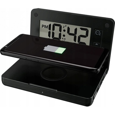 Na bezkabelové nabíjení spotřebičů podporujících Qi® technologii LC displej se 3 stupni jasu a bílým osvětlením pozadí Zobrazení času, data, dne v týdnu a teploty Alarm s...