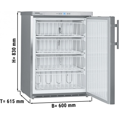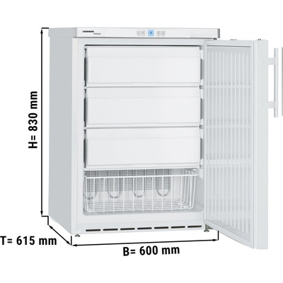 Provedení - Podpultový mrazák - Hrubý objem: 143 l. - Čistý objem: 133 l. - Statický chladicí systém - Postup ručního odmrazování - Elektronické ovládání - S automatem...