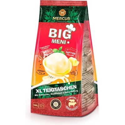 Pelmeně BIGmeni 1 kg MERKUR Pirohy BIGmeni značky MERKUR jsou vydatné a chutné jídlo vyrobené z kvalitního masa a tenkého těsta. Díky větší velikosti a šťavnaté masové náplni...