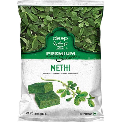 Složení: Methi (listy pískavice řecké seno). Mražené a balené v čerstvém stavu Skladování: Uchovávejte ve zmrazeném stavu. Po rozmrazení již znovu nezmrazujte. Původ: Indie