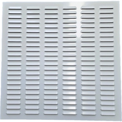 Větrací mřížka se síťovinou hliníková BÍLÁ 50x50 cm Větrací mřížka z hliníkového plechu s vysekávanou protidešťovou žaluzií. Šíře prolisu 60 mm. Síla plechu 0,8 mm, ohyb 45° ....