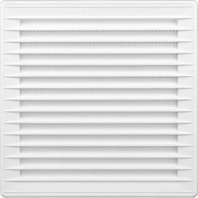 Venkovní větrací mřížka RRN 200x200 mm, bílá. Čtvercová venkovní ventilační mřížka pro přímou instalaci na fasádu. Tato mřížka je vyrobena z kvalitního odolného plastu ASA a je...