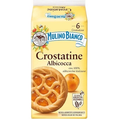 Svačinka z křehkého těsta s meruňkovou náplní Crostatina Mulino Bianco: drobivé křehké těsto a lahodný 100% italský meruňkový džem, abyste si vychutnali všechny dobroty...