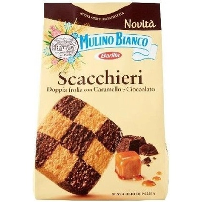Nové Mulino Bianco: sušenka z dvojitého křehkého těsta s karamelem a čokoládou, bez palmového oleje. Složení: Pšeničná mouka, Cukr, Slunečnicový olej, Máslo, Karamel 3,3 % *...
