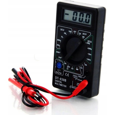 Digitální multimetr DT-830B, voltmetr, ampérmetr, ohmeter, tester diod a tranzistorů.Měřené veličiny:DCV stejnosměrné napětí: 200mV - 1000VACV střídavé napětí: do 750VDCA stejnosměrný proud: do 10AOdpor rozsahy - 200 / 2k / 20k / 200k / 2Mrozeznávání polarityTest...