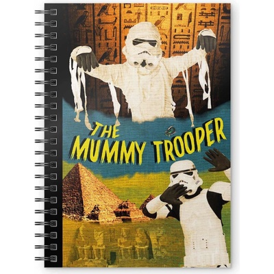 Blok A5 Star Wars - The Mummy Trooper Vtipný čtverečkovaný blok A5 v kroužkové vazbě s alegorickým motivem mumifikovaného Stormtroopera. Oficiální blok s grafikou slavné...