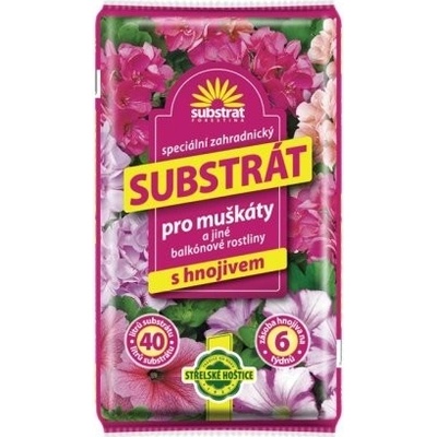 Hoštický substrát pro muškáty a jiné balkónové rostliny je vyroben ze směsi vytříděné světlé a tmavé rašeliny, dobře vyzrálého jemně tříděného kůrového kompostu a jemně...