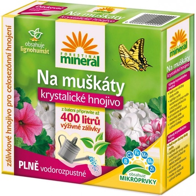 Krystalické hnojivo NA MUŠKÁTY a jiné balkónové květiny je vodou beze zbytku rozpustné hnojivo určené k výživě uvedených rostlin v průbehu jejich vegetačního cyklu. Vyváženým...