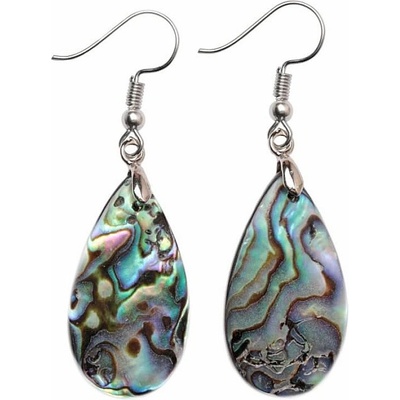 Náušnice Kapky z paua mušlí s nezaměnitelnou duhovou hrou barev. Náušnice mají ztv. afro závěs z bižuterního kovu, délka je cca 5 cm (po zavěšení do ucha). Ilustrativní vyobrazení. Krabička není součástí náušnic. Paua je druhem mušle abalone (Haliotis Iris) z moří...
