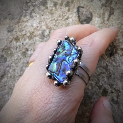 Autorský cínovaný prsten s Paua perlou. Buď originál. Materiál: Název Paua pochází z maorštiny a jde o druh lastury s naprosto jedinečnou kresbou. Vyskytuje se pouze v...