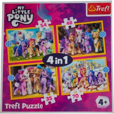 Dětské puzzle TREFL s motivem animovaného filmu My Little Pony. Progresivní puzzle s různou obtížností - 4 puzzle s 35 - 70 dílky. Rozměr složeného puzzle cca 28,5 x 20,5...