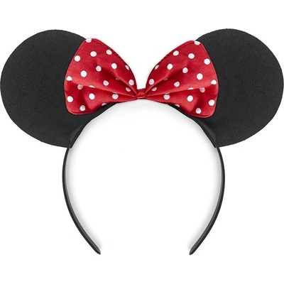 Čelenka "myška Minnie" s černými oušky a červenou mašlí s puntíky. Velikost je univerzální - vhodná pro děti i dospělé.
