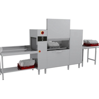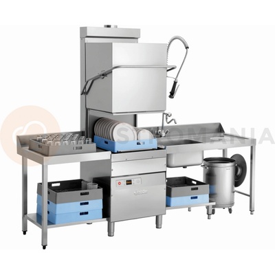 Profesionální průběžná myčka nádobí v celonerezovém provedení. Mytí je uskutečňováno vodou o teplotě 55 °C, která je přes filtry čerpána do vany. Oplachová voda z bojleru o...
