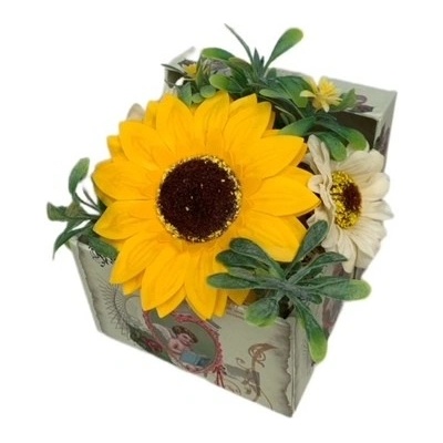 Dekorace Mýdlová kytice v dárkovém miniboxu Sun box Dekorační kytice bude skvělým doplňkem Vašeho bytu, kanceláře nebo třeba vstupní haly. Je trvanlivá, hodí se výborně...