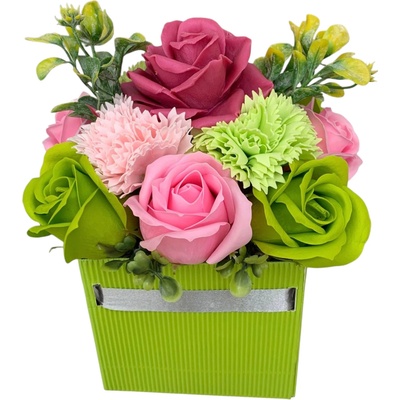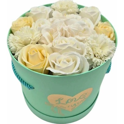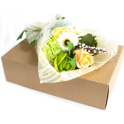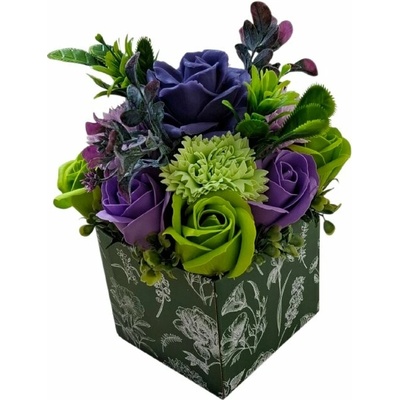 Stojací Mýdlová Kytice v krabici Zelená Nádherně vázaná a balená kytice z mýdlových květů je perfektním dárkem, svatebním darem nebo dárkem pro každou...