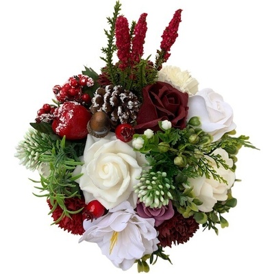 Mýdlová kytice Vánoční nálada– originální vánoční dekorace a dárek Elegantní mýdlová kytice v bordo-bílém vánočním tónu je nádhernou ozdobou i originálním dárkem pro vaše...