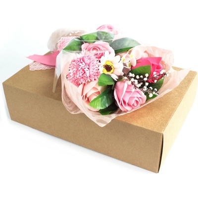 Stojací Mýdlová Kytice v krabici Růžová Nádherně vázaná a balená kytice z mýdlových květů je perfektním dárkem, svatebním darem nebo dárkem pro každou...