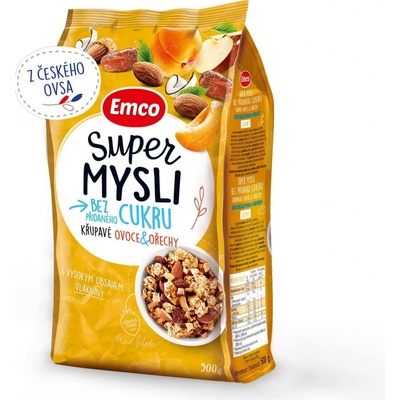 Super mysli bez přidaného cukru ovoce a ořechy 500g od značky Emco je ideální jako snídaně nebo svačina doma i na cestách. Obsahuje směs, která vám dodá energii a navíc výborně...