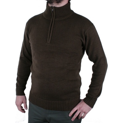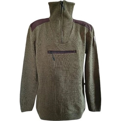 Pánský pletený pulovr s vysokým límcem na zip. Kapsa na zip, pod zipem výšivka divočáka.Materiál: 70% Akryl 30% Vlna