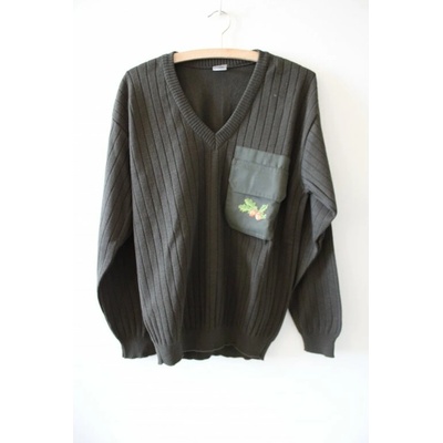 Pletený svetr zelené barvy s výstřihem do V V horní levé části je plátěná kapsa s výšivkou jelen Kapsa se zapíná pomocí suchého zipu Velikost: L