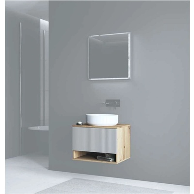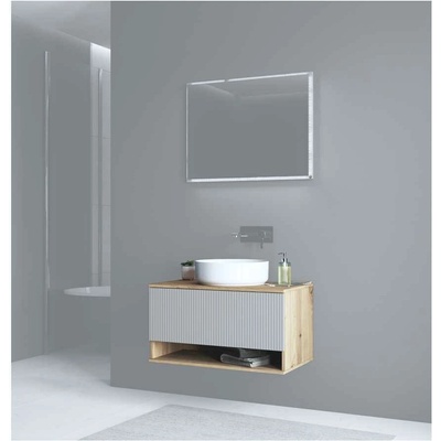Koupelnový set SET-BC B ARTISAN 100CM R o šířce 100 cm s deskou v dekoru dub Artisan a frontami v dekoru kašmírový mat nabízí elegantní a praktické řešení pro moderní koupelny....