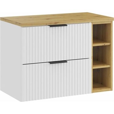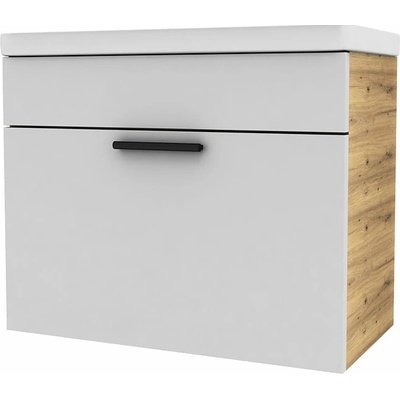 Set Adel White 80 s deskou v dekoru Dub Artisan je elegantní a funkční sestava pro menší koupelny, která si zakládá na moderním designu a praktičnosti. Čistě bílá matná skříňka...
