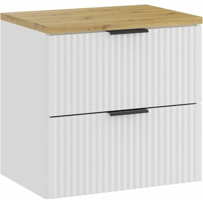Set Adel White 60 s deskou v dekoru dub Artisan je stylové a funkční řešení pro menší koupelny. Čistě bílá matná skříňka s vertikálně rýhovanými čely tvoří světlý a...