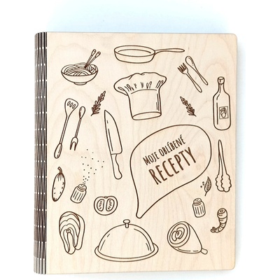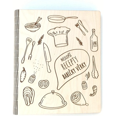 Dřevěná kuchařka - zápisník na recepty - Nejlepší recepty - text na přání Dřevěná kuchařka - zápisník na recepty, text na deskách dle vašeho zadání. Pro 50 ks linkovaných nebo...
