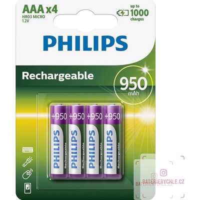 Typ baterie: AAA Druh baterie: Ni-MH Kapacita baterie (mAh): 950 Napětí akumulátoru / baterie (V): 1.2 Počet ks v balení (ks): 4 Měrný počet kusů (ks): 4 velikost baterie:...