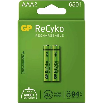 Nabíjecí baterie GP ReCyko 1000 AAA (HR03), 2 ks Parametry produktu možnost nabíjení ano chemické složení NiMH napětí 1,2 V kategorie/řada ReCyko typové označení HR03...