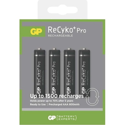 Baterie GP ReCyko+ Pro Professional 800 HR03 (AAA), krabička 4 kusy Nabíjecí baterie GP ReCyko+ Pro Professional jsou druhou generací a zároveň nástupcem oblíbených baterií...