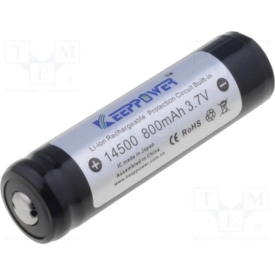 Akum: Li-Ion; 14500; 3,7V; 800mAh; Ø14,3x50,3mm; 2,5A; 1ks.