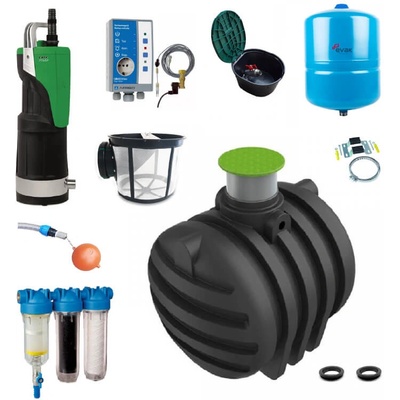 Kompletní sestava pro zálivku zahrady s nádrží na dešťovou vodu Aquastay 6000 l Kompletní sestava pro hospodaření s dešťovou vodou na zahradě. Komponenty - Podzemní...