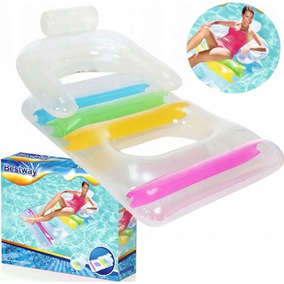 Užívejte si vodních radovánek nebo zkrátka relaxujte u vody či na vodě! Nafukovací transparentní lehátko s barevnými vzduchovými kanálky s područkami a opěrkou hlavy....