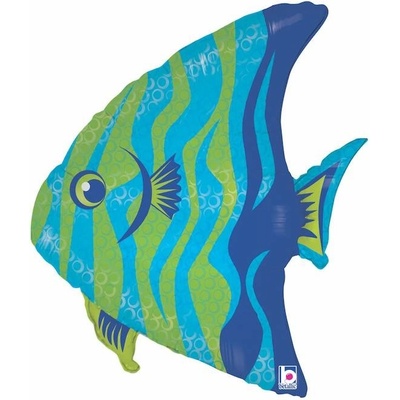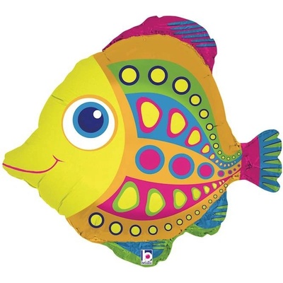 Fóliový balónek znázorňuje rybu v zářivých barvách. Tyto balónky jsou určeny k uvázání na tyčku s kloboučkem, k nafukování heliem nejsou vhodné.