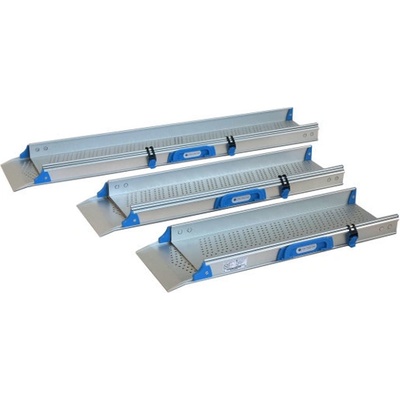Dvoudílné teleskopické nájezdové rampy - délku lze nastavit vysouváním a zasouváním teleskopické části - rampy jsou vyrobeny z hliníkových profilů odolných proti korozi -...