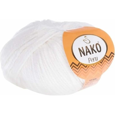 Pletací Příze Nako Peru 208 - bílá Složení: 50% premium akrylik, 25% vlna, 25% alpaka Hmotnost: 100 g Návin: 130 m Jehlice: 5,5-6 Háček: 5,5