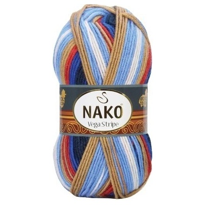 Pletací Příze Nako Vega Stripe 82411 - modrá pro ruční pletení Složení: 100% premium akrylik Hmotnost: 100 g Návin: 195 m Jehlice: 4 - 5 Háček: 2 - 3 Složení: 100% premium...