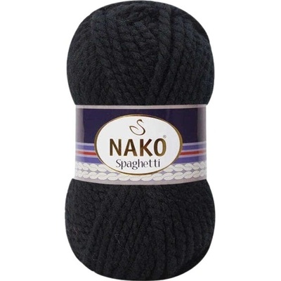 Příze Nako Spaghetti 217 - černá je silnější směsová příze s obsahem vlny vhodná na pletení zimních svetrů, šál, nákrčníků, rukavic nebo čepic. Lze ji také použít pro pletení na...