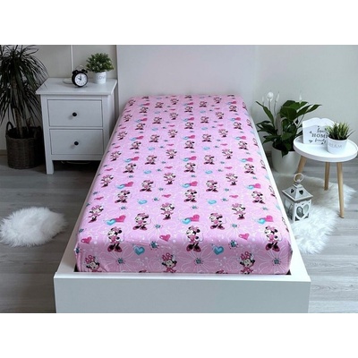 Dětské bavlněné prostěradlo s motivem Minnie v růžové barvě. Vhodné pro holčičky. Rozměr prostěradla je 90x200x25 cm. Název: Minnie flowers 02 Dětské napínací prostěradlo s...