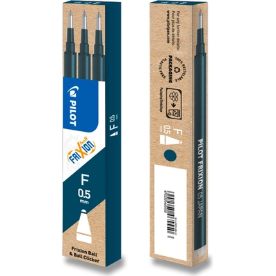 Sada 3 černých modrých náplní (hrot F) pro rollery Pilot: FriXion Ball, FriXion Slim, FriXion LX a FriXion Clicker. - Výrobek s vyměnitelnou náplní je hospodárnější a...