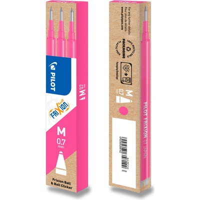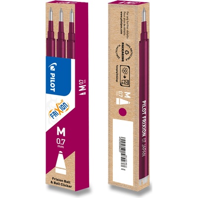 Náplň pro rollery Pilot FriXion a FriXion Clicker M 07. Vhodná pro běžné psaní s možností mazání. Balení obsahuje 3 ks náplní. Šíře hrotu: 0,7 mm | Šíře stopy: 0,35 mm