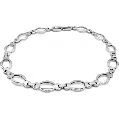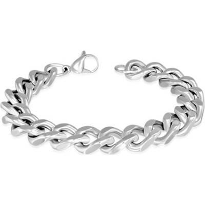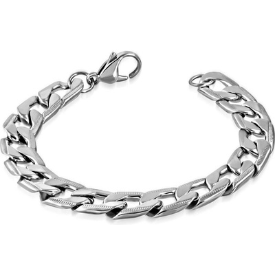 Náramek z chirurgické oceli. Lesklá povrchová úprava. Placatá očka s jemným proužkovým vzorem. Délka náramku 21 cm. Šířka náramku 11,5 mm. Dodání ihned,náramek je skladem.