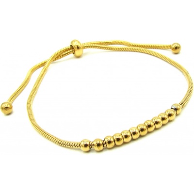 Jemný a elegantní náramek z chirurgické oceli. Lesklá povrchová úprava. Zdobený korálky. Délka náramku 19 cm. Šířka náramku 8 mm. Dodání ihned - náramek je skladem.