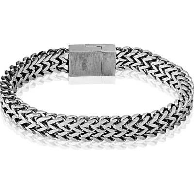 Náramek z chirurgické oceli. Lesklá povrchová úprava. Placatá očka s jemným proužkovým vzorem. Délka náramku 22 cm. Šířka náramku 9 mm. Dodání ihned,náramek je skladem.