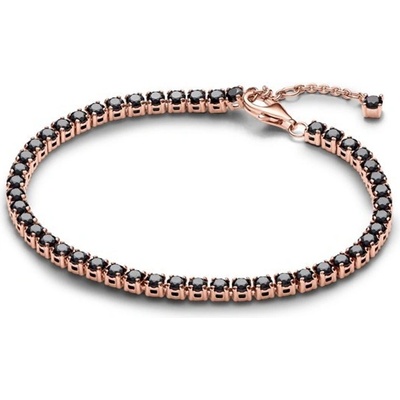 Dodejte svému stylingu výrazný nádech s třpytivým černým tenisovým náramkem PANDORA. Je pozlacený 14karátovým růžovým zlatem a ve čtvercových otevřených košíčcích je do krapen...