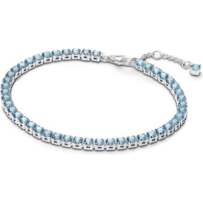 Stříbrný třpytivý světle modrý tenisový náramek PANDORA 591469C03 je zdobený syntetickými krystaly akvamarínové barvy, které dodávají šperku hloubku. Jeho nadčasový design je...