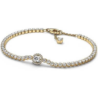 Náš klasický tenisový náramek PANDORA je v novém pojetí vyrobený ze stříbra a zdobí ho třpytivá řada 34 kubických zirkonií s kulatým briliantovým výbrusem, osazených do krapen....