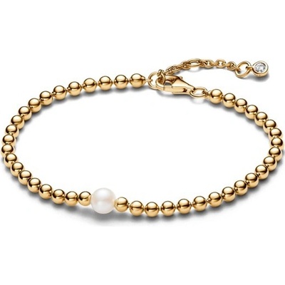 Zazařte s naším náramkem PANDORA se sladkovodní kultivovanou perlou a kuličkami pozlacenými 14karátovým zlatem. Středová perla obklopená leštěnými kovovými kuličkami zachycuje...