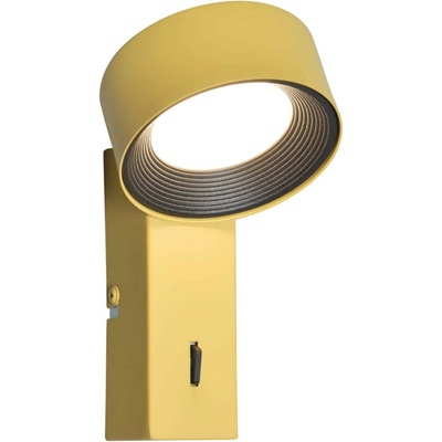 Orientovateľné nástenné svietidlo do interiéru, kovová a extrudovaná hliníková konštrukcia, povrchová úprava v matnej zlatej, zvonka s matnými čiernymi detailmi, vybavená vypínačom.